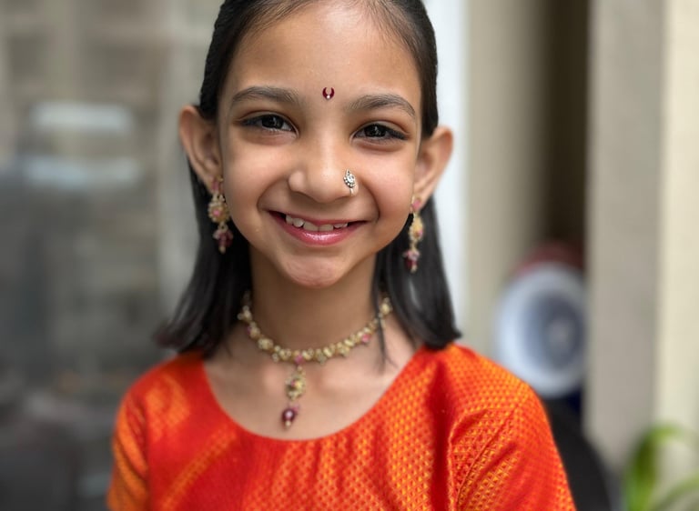 I am Radha. I like to dance and paint. I support my mother by creating pictures for Baalgeet. I like Baalgeet a lot!