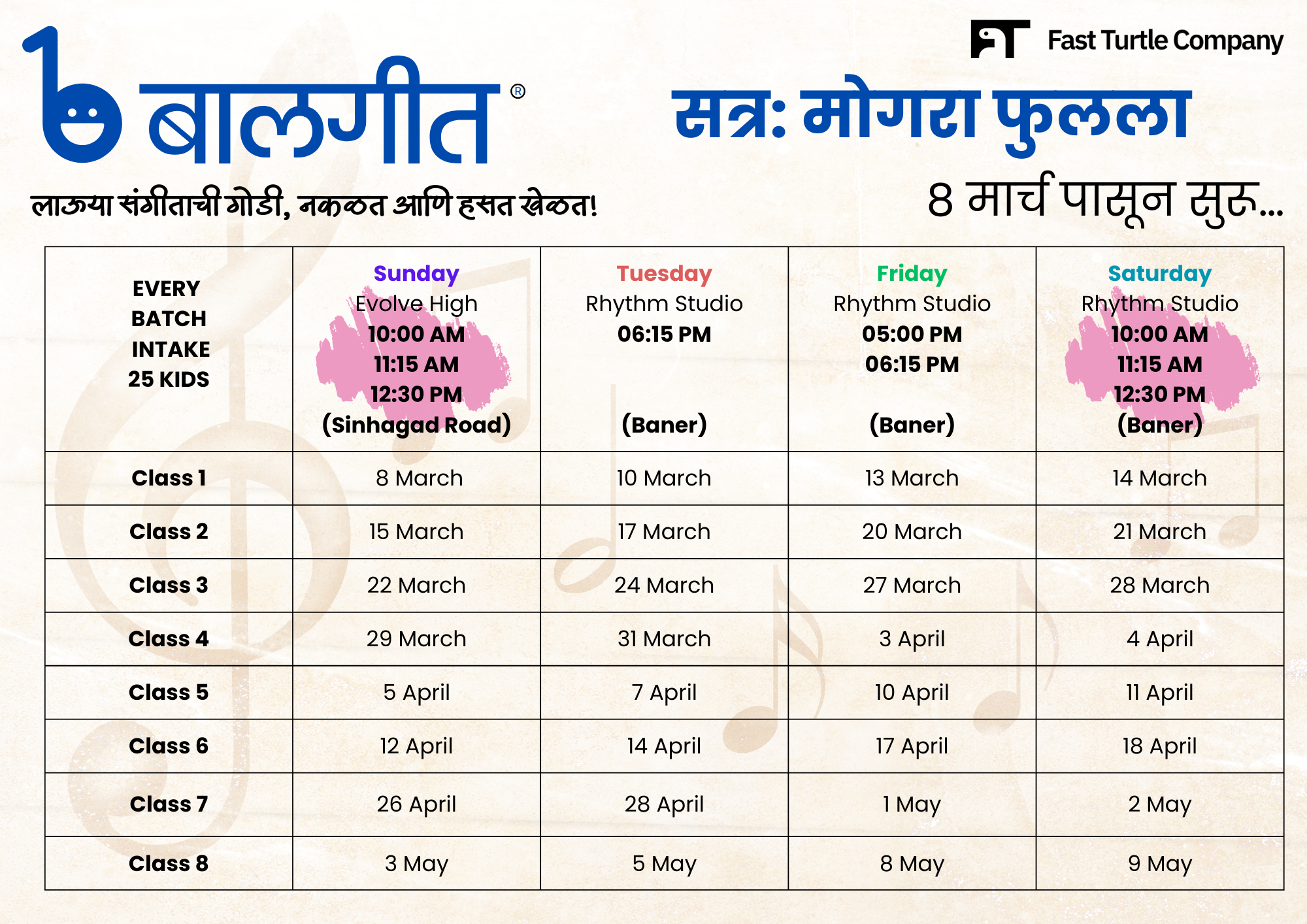 Saturday Rhythm Studio, Baner - 11:15 AM Batch