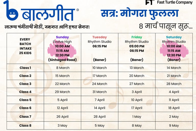 फी - बालगीत सत्र मोगरा फुलला : शुल्क रुपये ५३०७ - १८% GST समाविष्ट